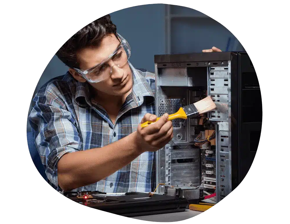 - Des techniciens informatiques qui s'occupent du centre d'assistance et traitent tous les problèmes informatiques quotidiens nécessaires ainsi que les tâches de maintenance courantes.
